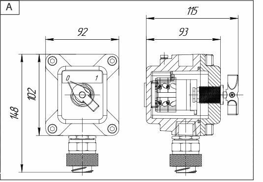 Переключатели серии УНВ-ДГ(В)-01-ПК состоят из корпуса и крышки, которые изготовлены из коррозионностойкого модифицированного алюминиевого сплава. На корпусе переключателей УНВ-ДГ(В)-01-ПК размещены кабельные вводы. На крышке переключателя расположена ручка управления переключателем.