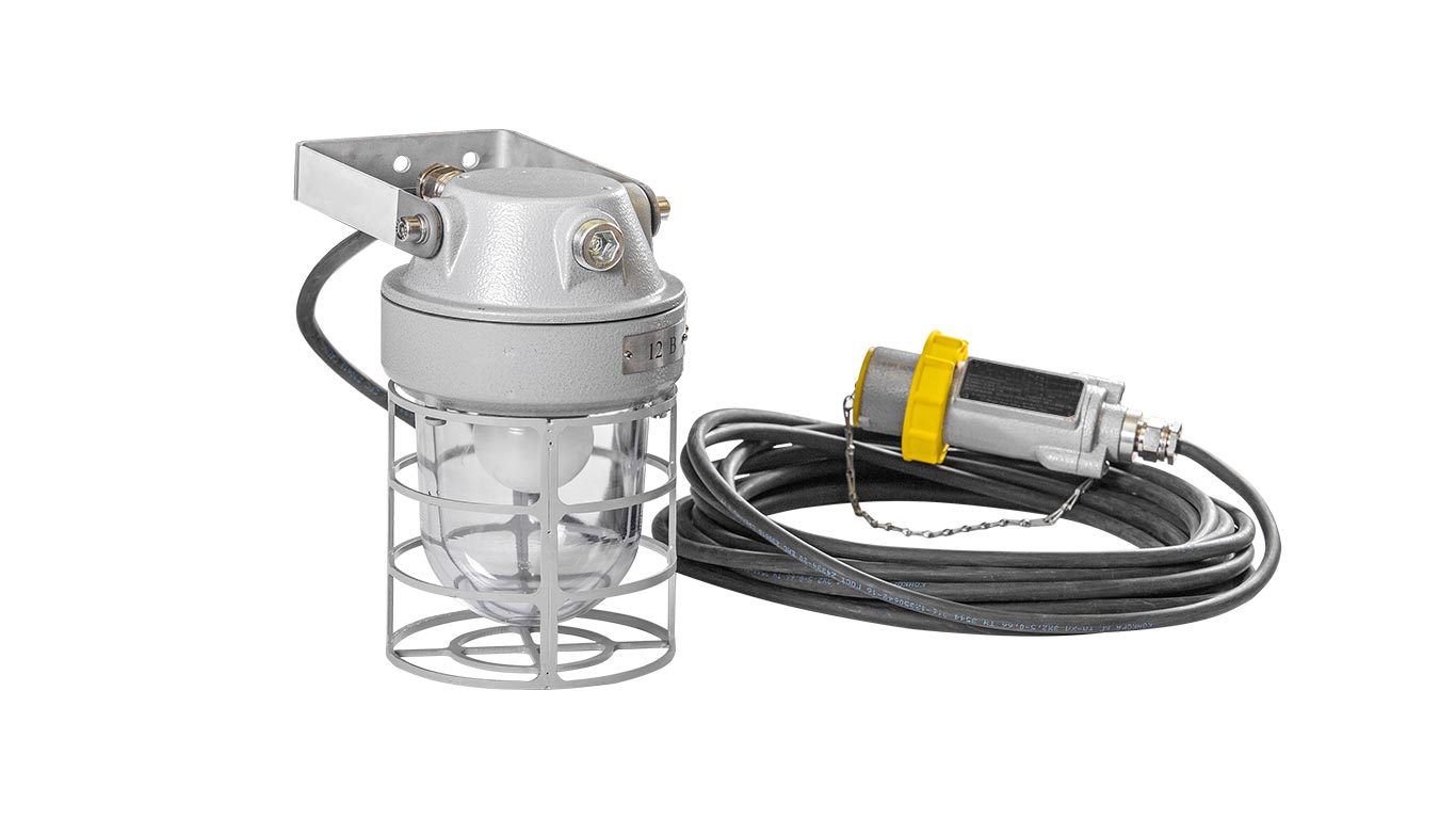 Взрывозащищенный светильник переносной изготавливается со стандартным патроном под лампы с цоколем E27 и предназначен для промышленного применения во взрывоопасных средах в помещениях и наружных установках (группа II) с содержанием газа и горючей пыли соответственно для взрывоопасных зон 1 – 2.