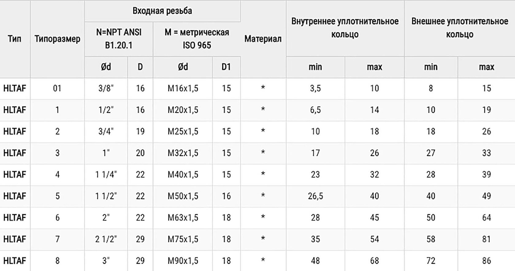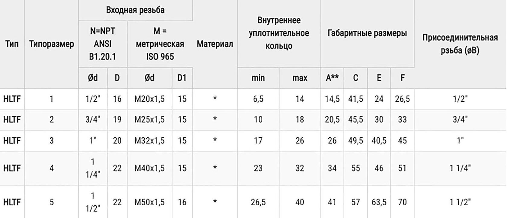 Стандартный тип резьбы: коническая B1.20.1 NPT или метрическая ISO 965.