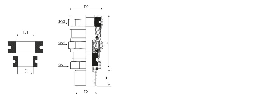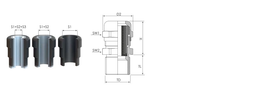 В зависимости от назначения кабельные вводы выпускаются с одним или двумя уплотнительными кольцами, обеспечивая взрывобезопасное уплотнение на внутренней оболочке кабеля и защиту от воздействия окружающей среды на внешней оболочке.