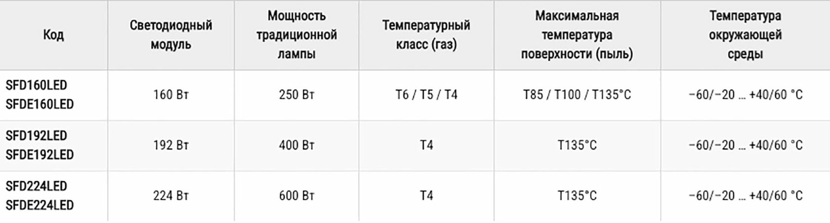 Прожекторы серий SFD-LED и SFDE-LED состоят из корпуса, изготовленного из коррозионностойкого модифицированного алюминиевого сплава, а также рамки с термостойким боросиликатным прозрачным стеклом с высокой механической прочностью. Окрашивание эпоксидной порошковой краской. На прожекторах не устанавливается защитная решетка поскольку стекло прошло испытания ударной прочности в условиях высокого механического риска.