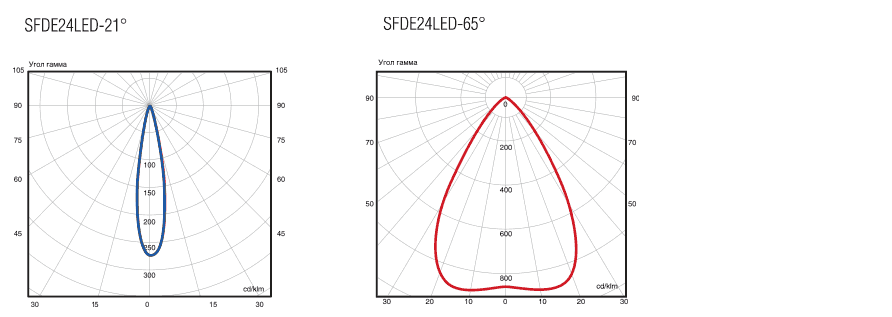 Возможна комплектация с линзами 21°, 45° и 65°, что позволяет решить любую задачу благодаря различному светораспределению.