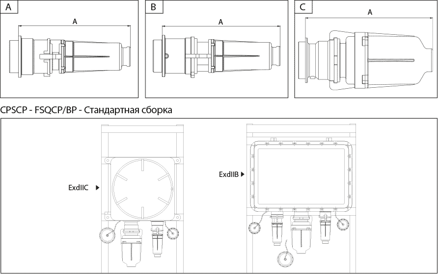 Взрывозащищенные разъемы из алюминиевого сплава с номиналом до 125А. Штекерные разъемы и вилки серии CPSCP-FSQCP. Маркировка взрывозащиты 1 Ex d IIC T6 Gb и Ex tb IIIC T85°C Db