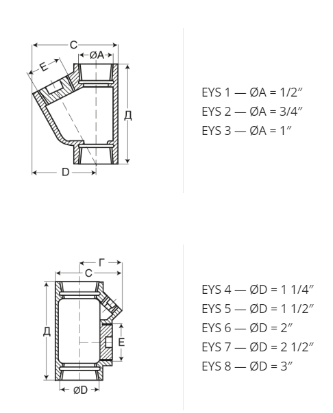 — серия EYS используется для вертикальной установки и доступна в двух вариантах: