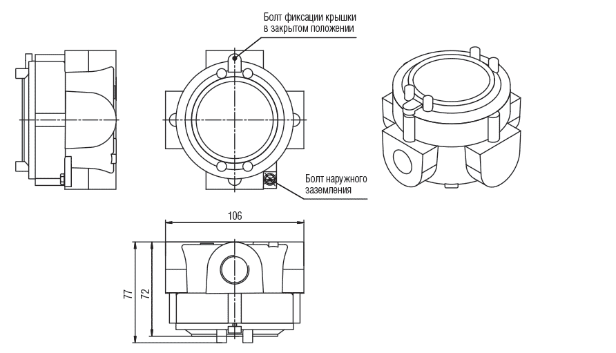 Коробки изготавливаются из коррозионностойкого модифицированного алюминиевого сплава со специальным покрытием, стойким к скалыванию покрасочного слоя на эпоксидной основе. Для обеспечения защиты от внешних воздействий применяется специальная неопреновая прокладка между крышкой и корпусом коробки. Конструкция коробки предусматривает внешний и внутренний болт заземления. Болты изготавливаются из нержавеющей стали.